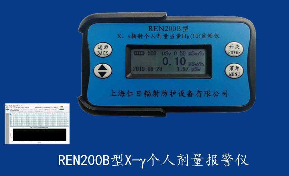 REN210型X、γ、中子個人輻射報警儀內(nèi)置SiPM和鋰玻璃晶體組成中子探測器儀器,采用反照率方式探測中子射線,同時也能探測X、γ射線。因此它可同事監(jiān)檢測X、γ、中子三種射線。能顯示工作場所的劑量當(dāng)量率和累積劑量,更換電池時,日期及累積數(shù)據(jù)能永久保存。可選配RenRiPersonal個人劑量管理軟件,該軟件可存儲多個人的歷史數(shù)據(jù),能記錄日累積、月累積、年累積、輻照時長、計(jì)算平均劑量率、扣除或不扣除本底輻射,且以文字和圖譜的方式展現(xiàn)數(shù)據(jù)。廣泛應(yīng)用于環(huán)保、化工、水泥、煤礦、土木工程、石油、醫(yī)院、疾控、進(jìn)出口商檢、核電、加速器、機(jī)場、中子源庫和其他安檢、邊境控制海關(guān)檢測等領(lǐng)域中的工作人員進(jìn)行個人安全防護(hù)